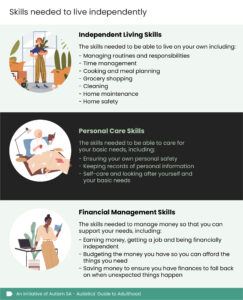 • Independent living skills – the skills needed to be able to live on your own